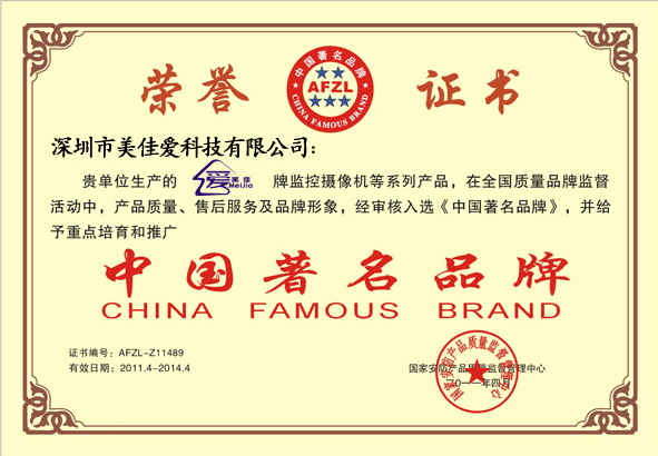 中國著名品牌證書副本